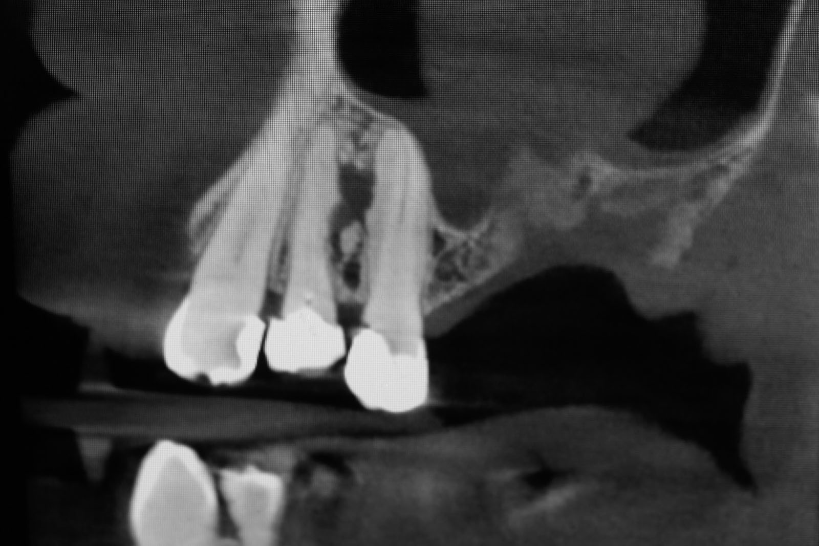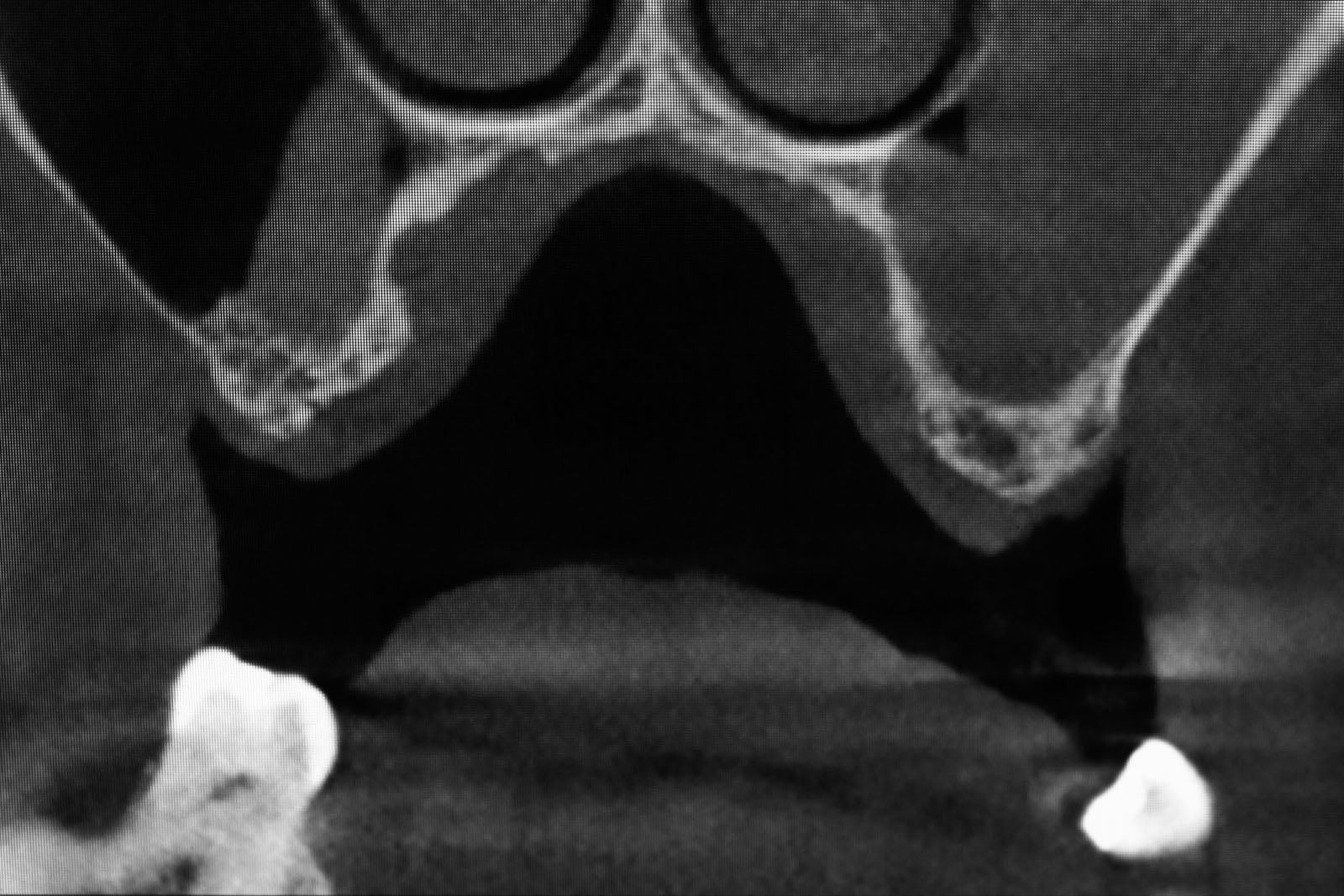 CBCT, które wybiórczo może okazać stan kości w pozostałej części zębodołowej szczęk, stan oraz powietrzność zatok szczękowych, co jest istotnym parametrem kwalifikującym pacjenta do zabiegu operacyjnego, stan przegrody nosa