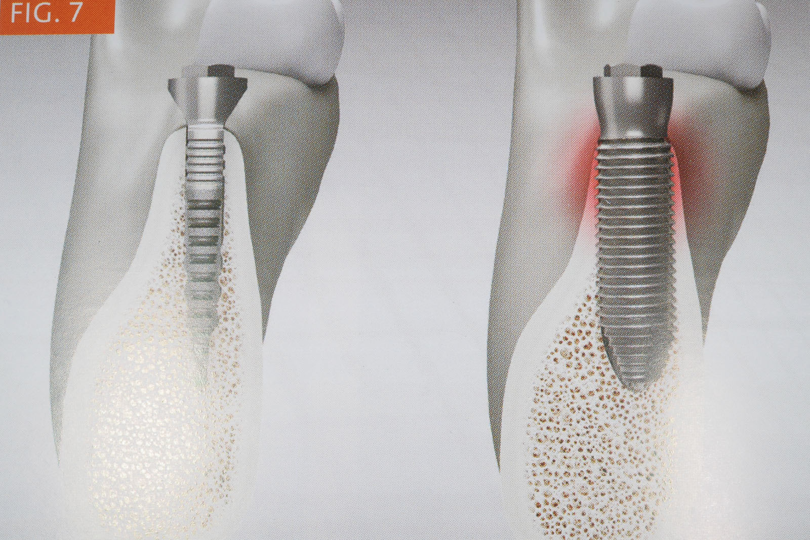 - Zaleca się używania wszczepów o patentowej powierzchni, poprawiającej proces osteointegracji, czyli strukturalnego i funkcjonalnego połączenia pomiędzy żywą tkanką kostną a powierzchnią obciążonego protetycznie implantu.