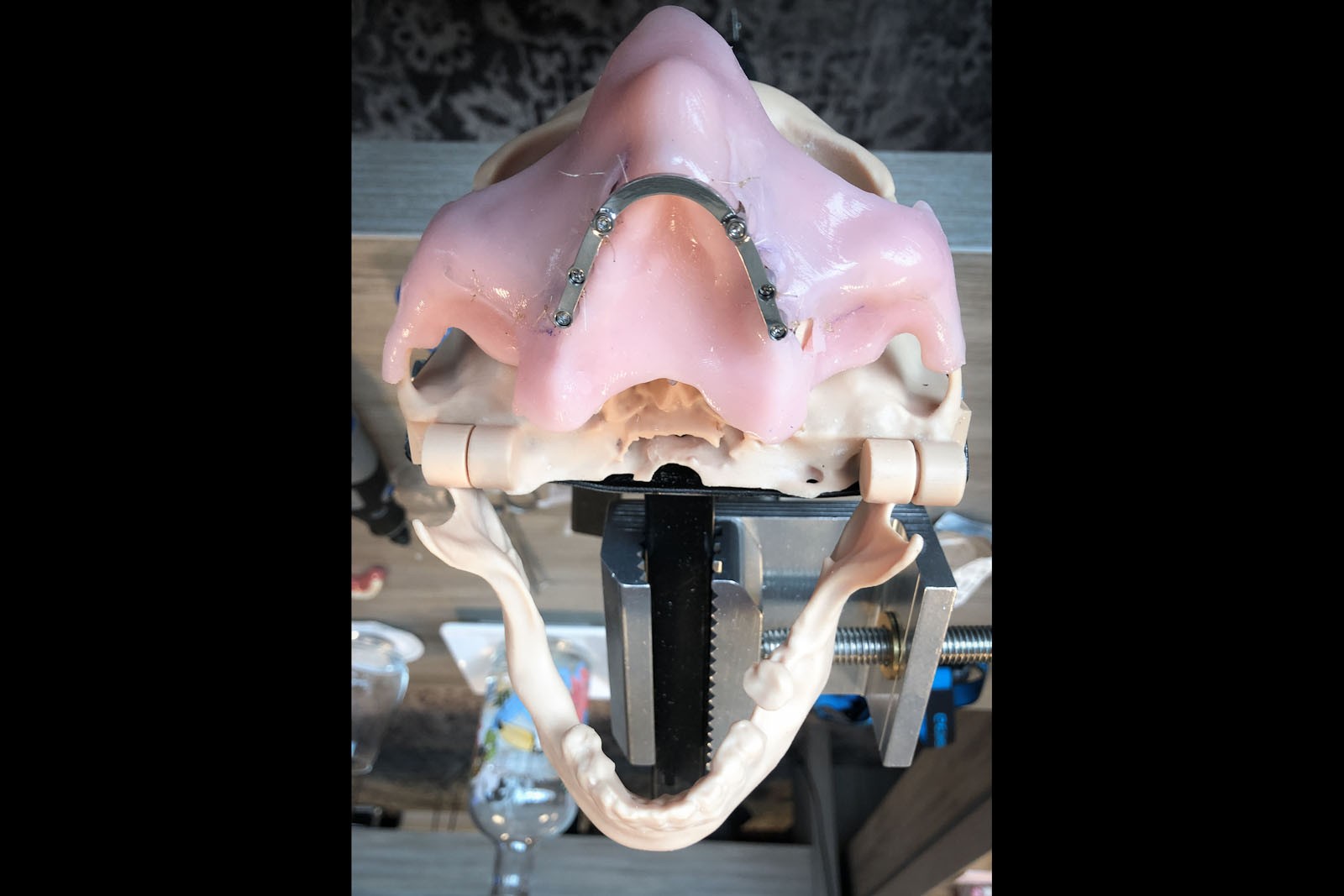 - Precyzyjna rekonstrukcja trójwymiarowych ubytków kostnych przy użyciu indywidualnie drukowanych siatek tytanowych, stosowana zarówno w odcinkach bocznych, jak i całym układzie kostnym żuchwy