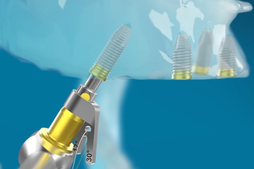 - Wszczepianie implantów pod odpowiednim kątem, aby uniknąć uszkodzenia istotnych szczegółów anatomii kości żuchwy, jak kanał nerwu zębodołowego oraz otwór bródkowy wraz z przebiegającym w nich nerwem i naczyniami krwionośnymi – technika all-on-4