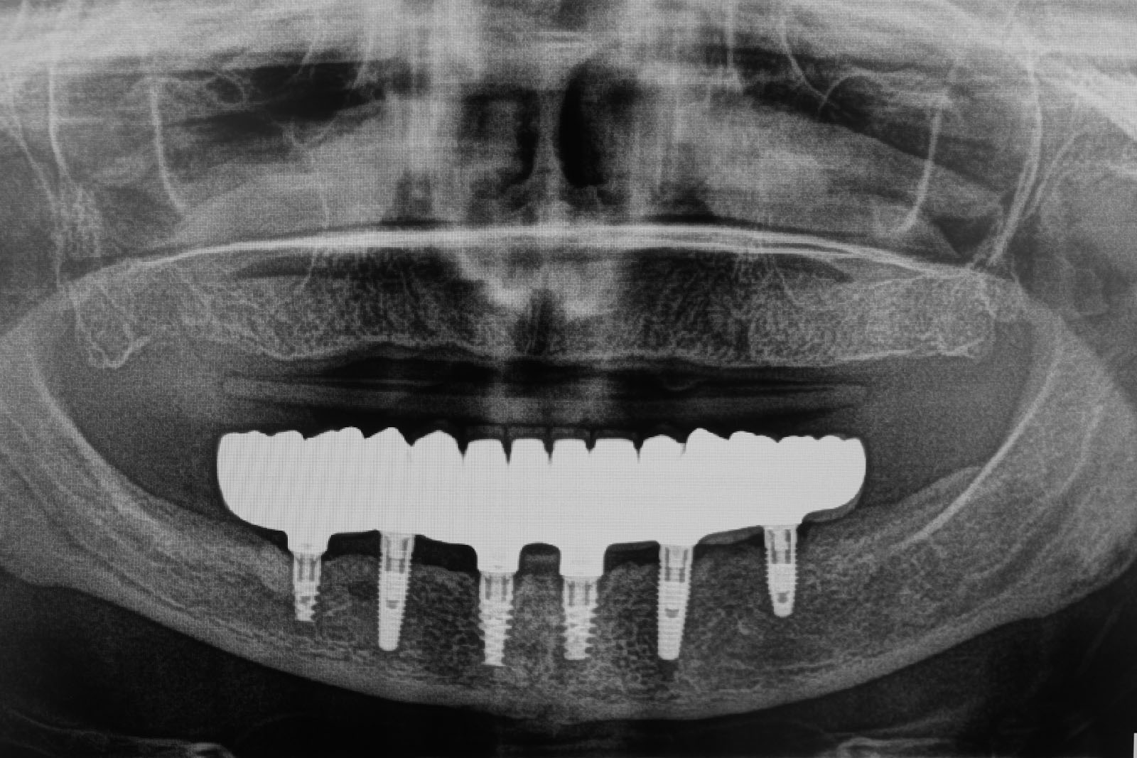 - Implantacja równolegle i symetrycznie wszczepionych implantów z maksymalnym wykorzystaniem podłoża kostnego żuchwy. Proponowana ilość implantów to 4, 6, 8, 10 oraz każda inna w zależności od stanu kości oraz projektu uzupełnienia protetycznego. Implantacje często łączone są z procedurami regeneracyjnymi dla kości, które stanowią warunek prawidłowego wgajania wszczepów stomatologicznych.